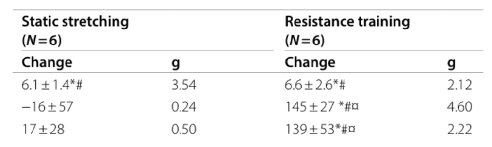 그렇기 때문에 정적 스트레칭과 근력운동을 비교한 연구를 제시한 것이다.
