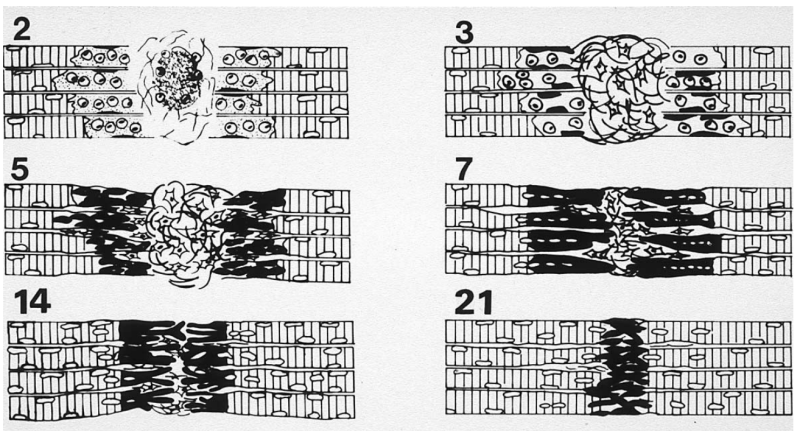 동시에 근섬유의 재생이 시작된다.