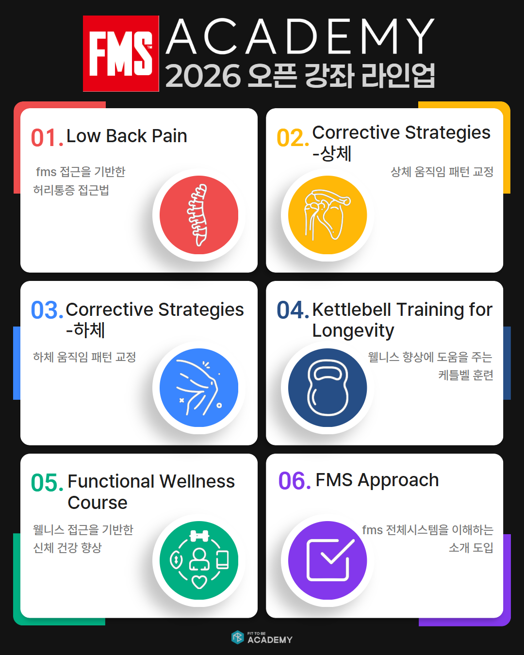 FMS사 7가지 국제자격증부터 매년 추가되는 과정들까지. 1천만원 가치의 커리큘럼을 연회비 33만원으로 누리세요.